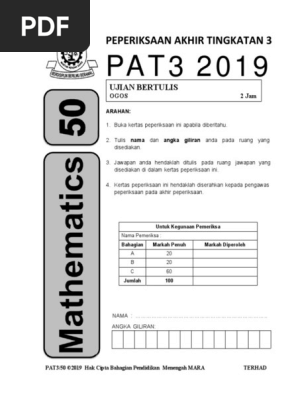 Harap latihan ini dapat membantu anda dalam ujian PT3 sebenar. Pulau pinang 2019 pt3 rbt pp-skema 2019 pt3 rbt pp selangor 2019 pt3 maths taman petaling 2019 pt3 maths taman petaling skema. MRSM Maktab Sains Rendah MARA.