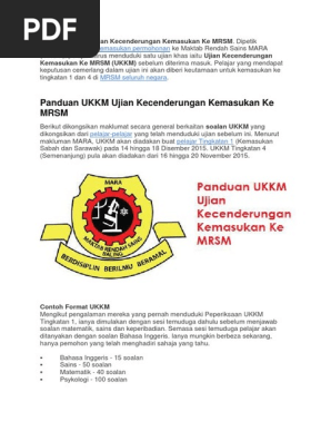 Panduan Ukkm Ujian Kecenderungan Kemasukan Ke Mrsm 2015 Pdf