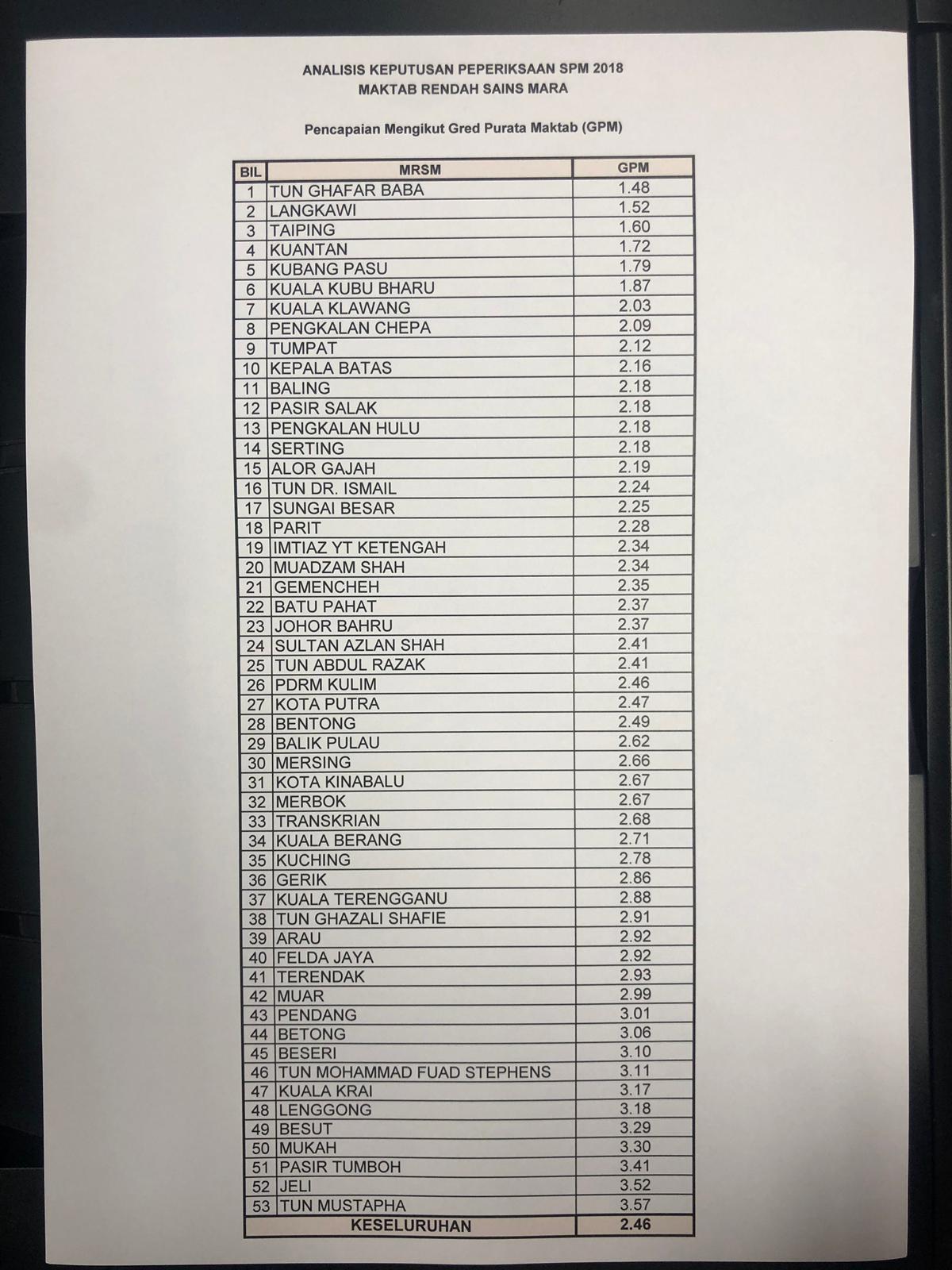 Ke tak penting pun asalkan graduan dapat kerja lepas grad. Ranking mrsm terbaik di malaysia tahun 2020 berdasarkan pencapaian keputusan spm 2019. Senarai Ranking sekolah ranking SBP dan ranking MRSM Terbaik 2018 Bagi Keputusan SPM Semakan keputusan SPM 2017 telah diumumkan semalam 3 Mac 2018 bersamaan hari Khamis.